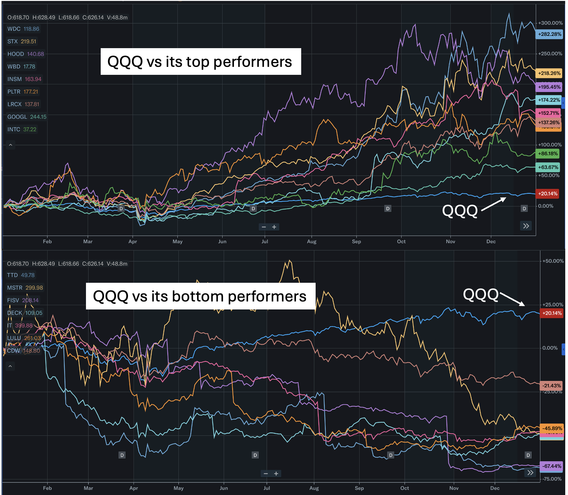 Illustration of QQQ top performing constituents vs bottom performing