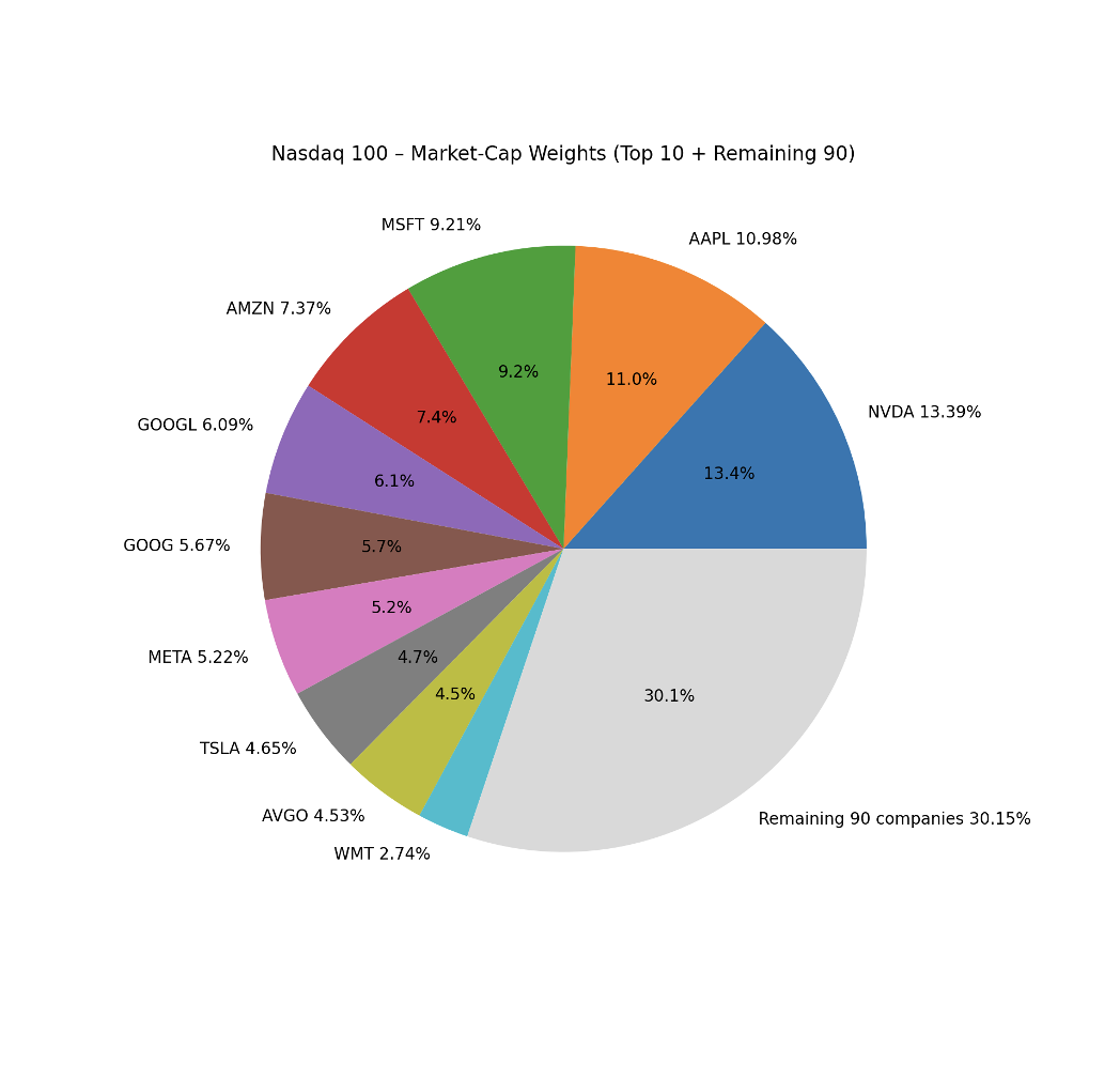Nasdaq 100 - Market-Cap Weights (Top 10 + Remaining 90)