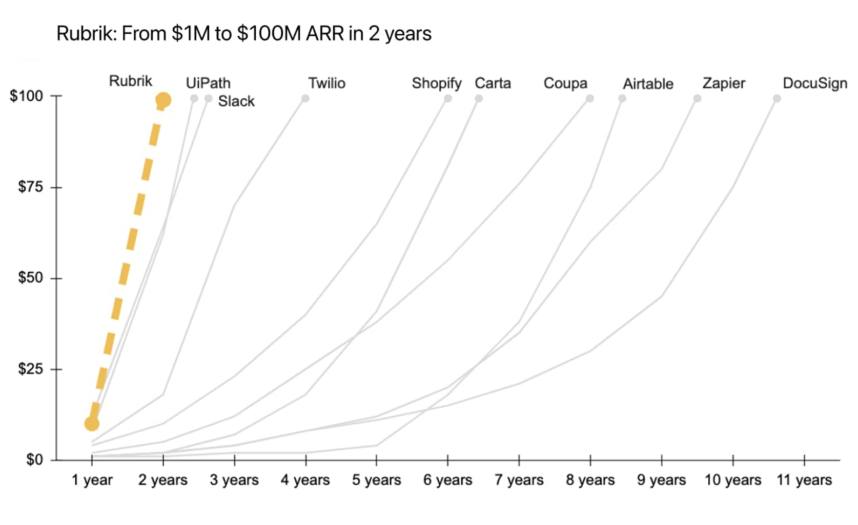 Rubrik demonstrated remarkably fast growth to reach the $100 million Annual Recurring Revenue (ARR) milestone.